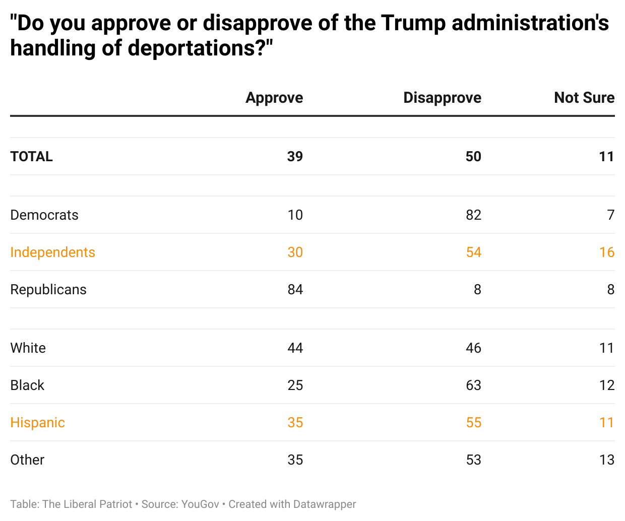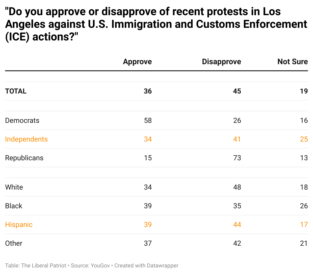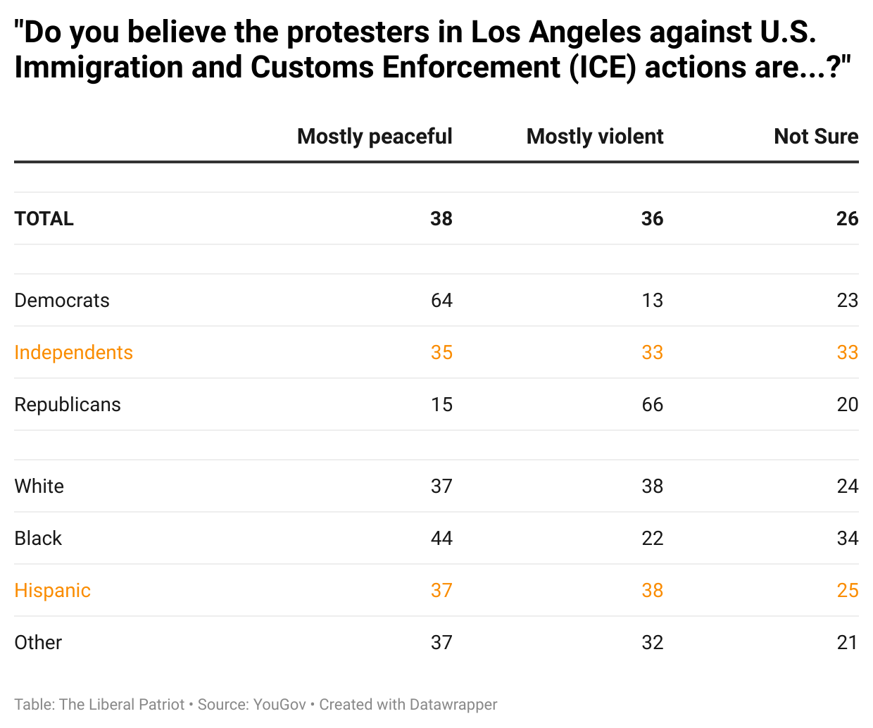 All-critical independent and Hispanic voters dislike both Trump’s deportation actions and anti-ICE protests.