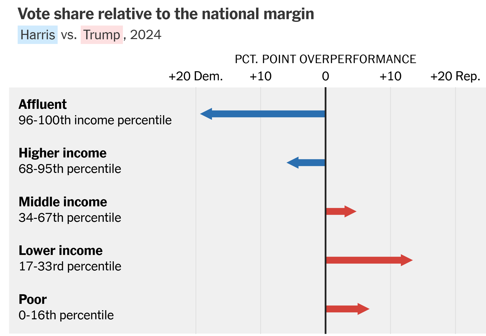 The party of the working class no longer! Democrats are still in denial about this trend and how difficult it will be to reverse it.