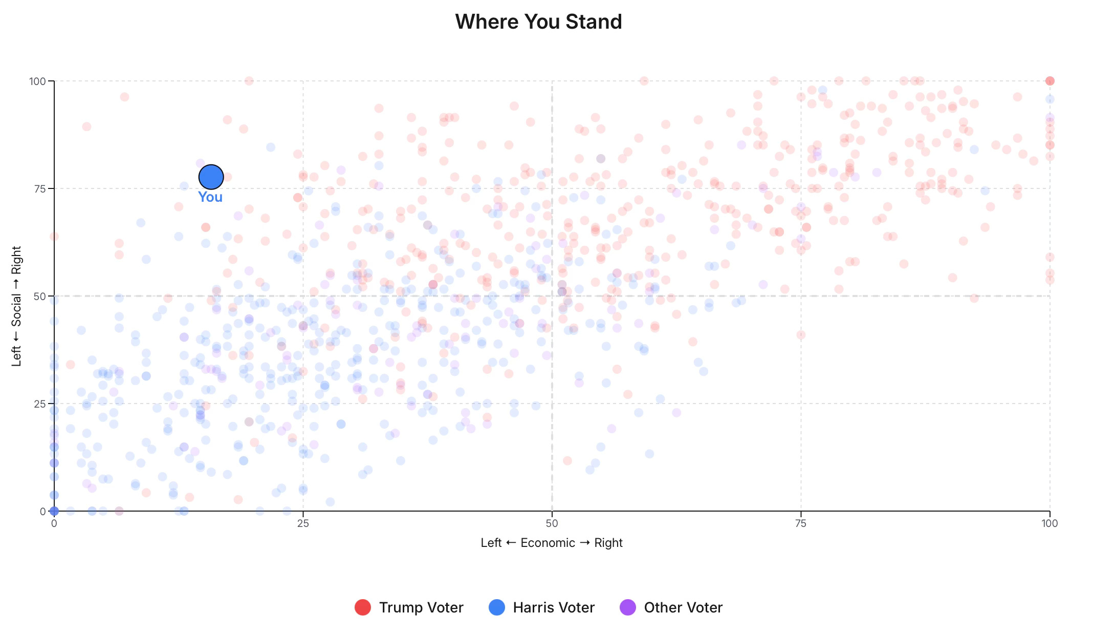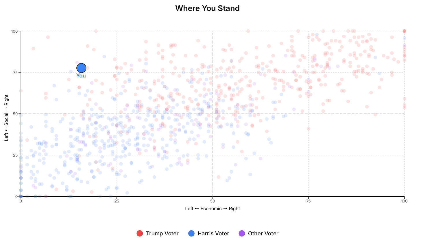 (TLP landed in the “Electability Democrats” tribe located in the economically liberal/socially conservative political quadrant who would vote for the Labor Party in a multi-party system—sounds about right!)