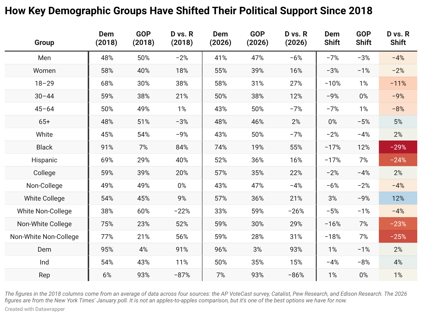 It is of course possible that the above data won’t have much bearing on the midterms. Many of the Trump voters who have grown bitter toward him are likely to be those infrequent voters with weaker partisan loyalties, and they may simply sit out the election entirely, which would still work in Democrats’ favor. But these trends also illuminate longer-term shifts that will certainly matter for 2028 and beyond.